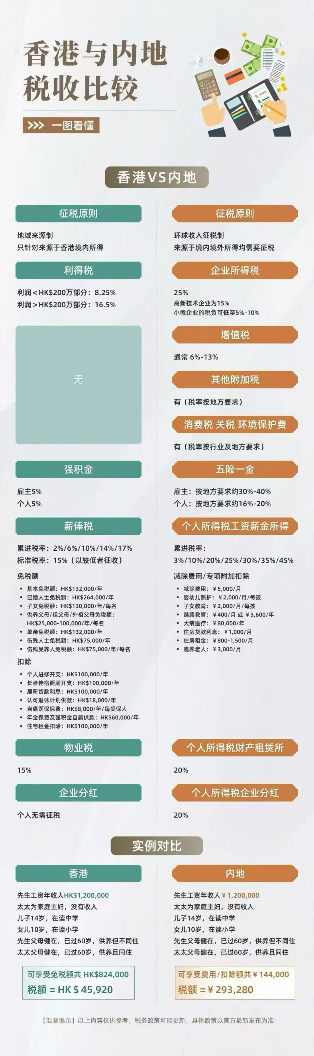 那说完了这次预算案的减税计划,再对比一下香港VS内地的赋税区别,下面附上一张简图。