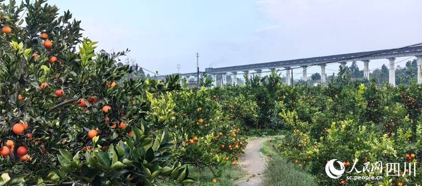 井研县柑橘培育基地看火车。人民网记者 刘海天摄
